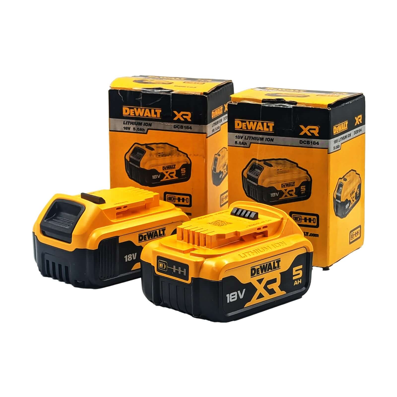 The **DEWALT 18V XR Li-Ion 5.0Ah Battery Twin Pack** (DCB184P2-XJ) provides a reliable and long-lasting power source for all your 18V XR tools. With **5.0Ah XR Lithium Ion battery technology**, you get extended runtime and optimized power to complete applications quickly. This **DEWALT power tool battery** features protection against overheat, overload, and deep discharge conditions, increasing the overall battery life. The lightweight design provides upgraded 5.0Ah power without increasing the size or weight over the previous 4.0Ah battery, making it an essential upgrade for professionals seeking maximum productivity and less downtime on the jobsite.